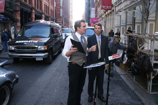 Charles Hughes, a street vendor whose table of books and screenplays stood adjacent to the morning press conference, wasn’t buying any of it. "This is just an indirect way to get rid of street vendors and make the place look like Beverley Hills," he said. "They just want to make New York City even more bland."