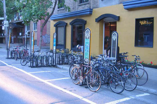 And here are some photos of on-street bike parking in other cities: