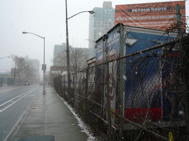 Gothamist has been following one of the most surreal aspects of the Kent Avenue drama—the ups and downs of the very unofficial "detour" sign pictured above, part of the anti-bike-lane campaign. On private property, it advises drivers that school buses will block the street and the bike lane while picking up and dropping off children. As of Dec. 31st, it was back up. As Gothamist writes, "The big question now is whether the city cares enough to step in and take it down."