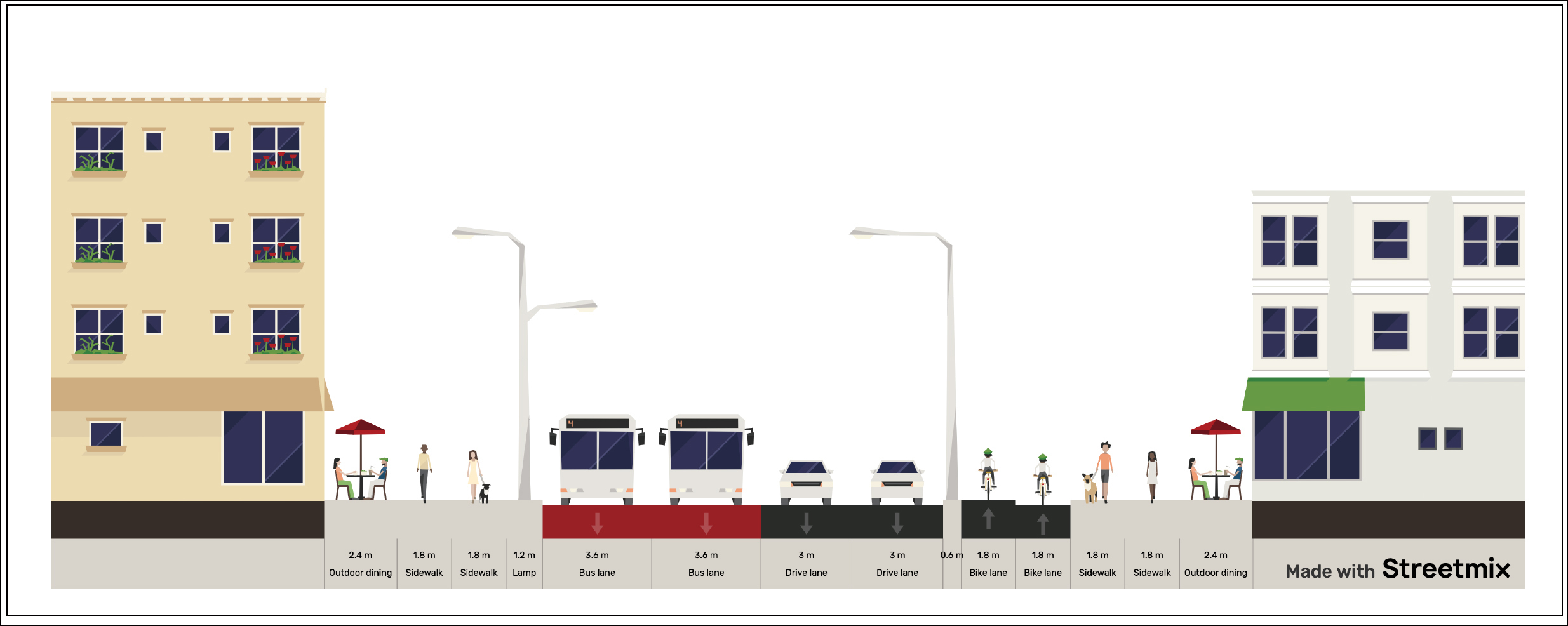“Let’s go beyond a bike lane, let’s have something a bit more visionary. Something dramatically different and something nicer to live on, nicer to commuter on, nicer for bus riders, and much wider sidewalks which are better for people with mobility issues and better for restaurants,” he said.