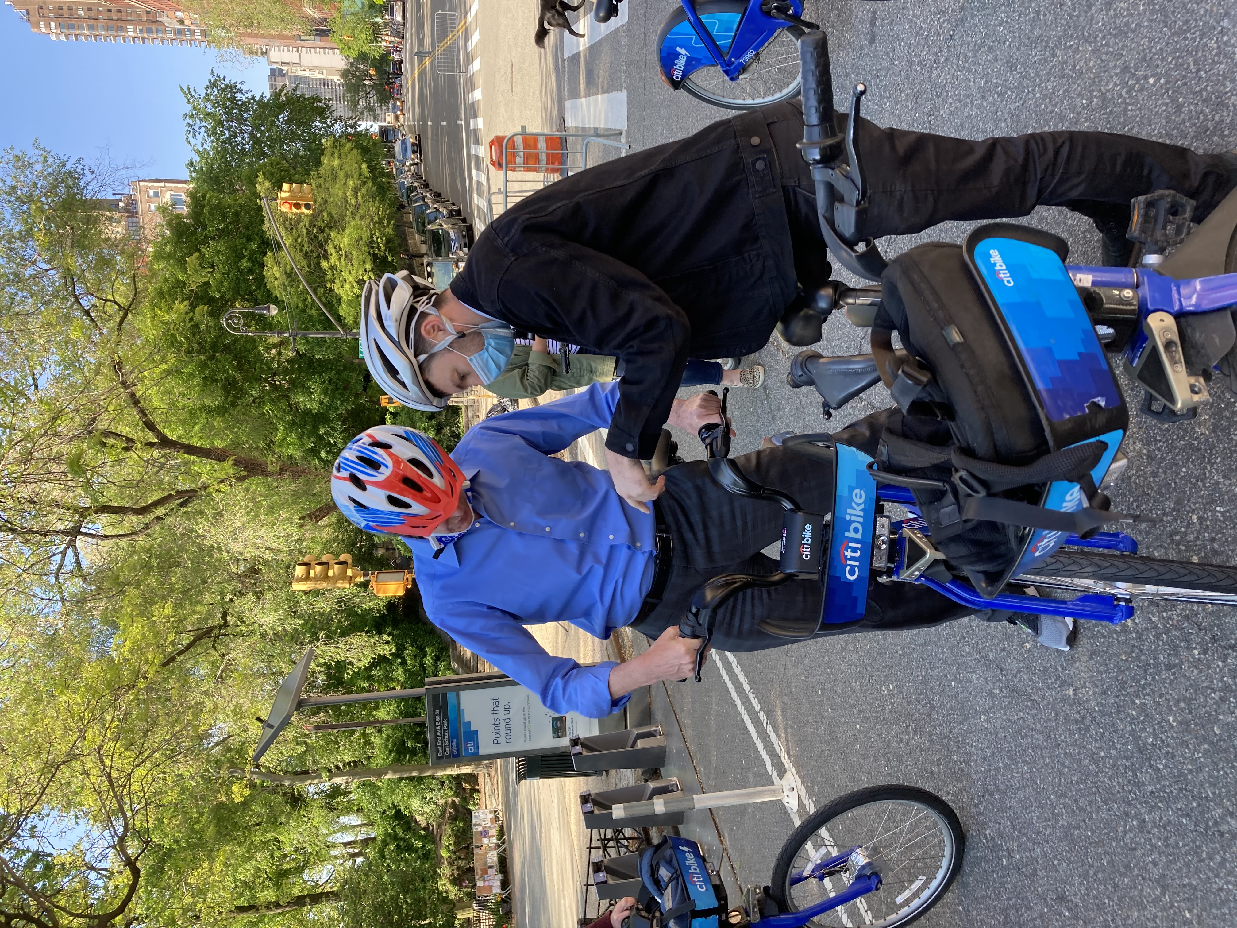 More than a year later, though, he finally did it, though it’s still not clear if he was actually only joking — before kicking into gear, the mayor got a quick lesson on how to work the “classic” Citi Bike (which, frankly, he should have shifted higher, as his legs were pedaling a mile-a-minute).