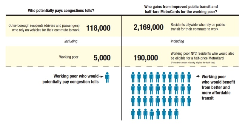As for the myth that there are a significant number of people who are poor but also wealthy enough to drive a car, and to need to drive it into Manhattan on any kind of regular basis: according to the Community Service Society, just 2 percent of the city’s working poor would be affected by congestion pricing. If politicians wading into the congestion-pricing debate are truly concerned about poor New Yorkers, they would advocate for a scheme with a minimum amount of exemptions that would raise the most money for mass transit, because that is overwhelmingly how poor people get around the five boroughs.