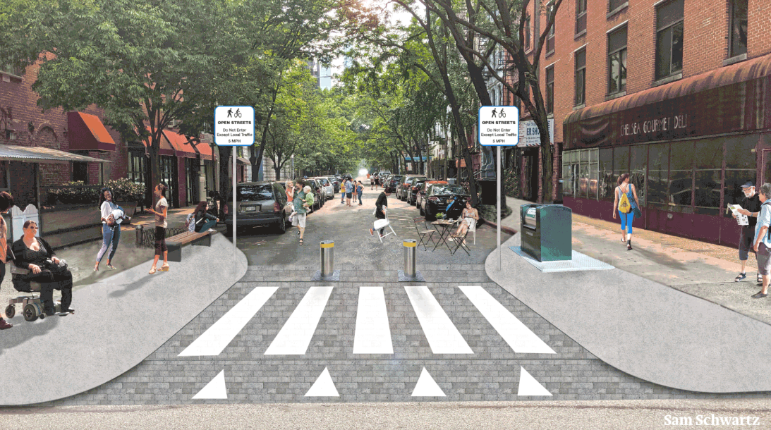 “Open streets are a critical tool for reclaiming streets from cars and returning them to people,” the report concludes. “The city should immediately make every open street permanent, 24/7, open space which is made predominantly or entirely car-free by using durable infrastructure to limit and discourage car-access, and where car-access is permitted, to reduce vehicle speeds to five miles per hour.”