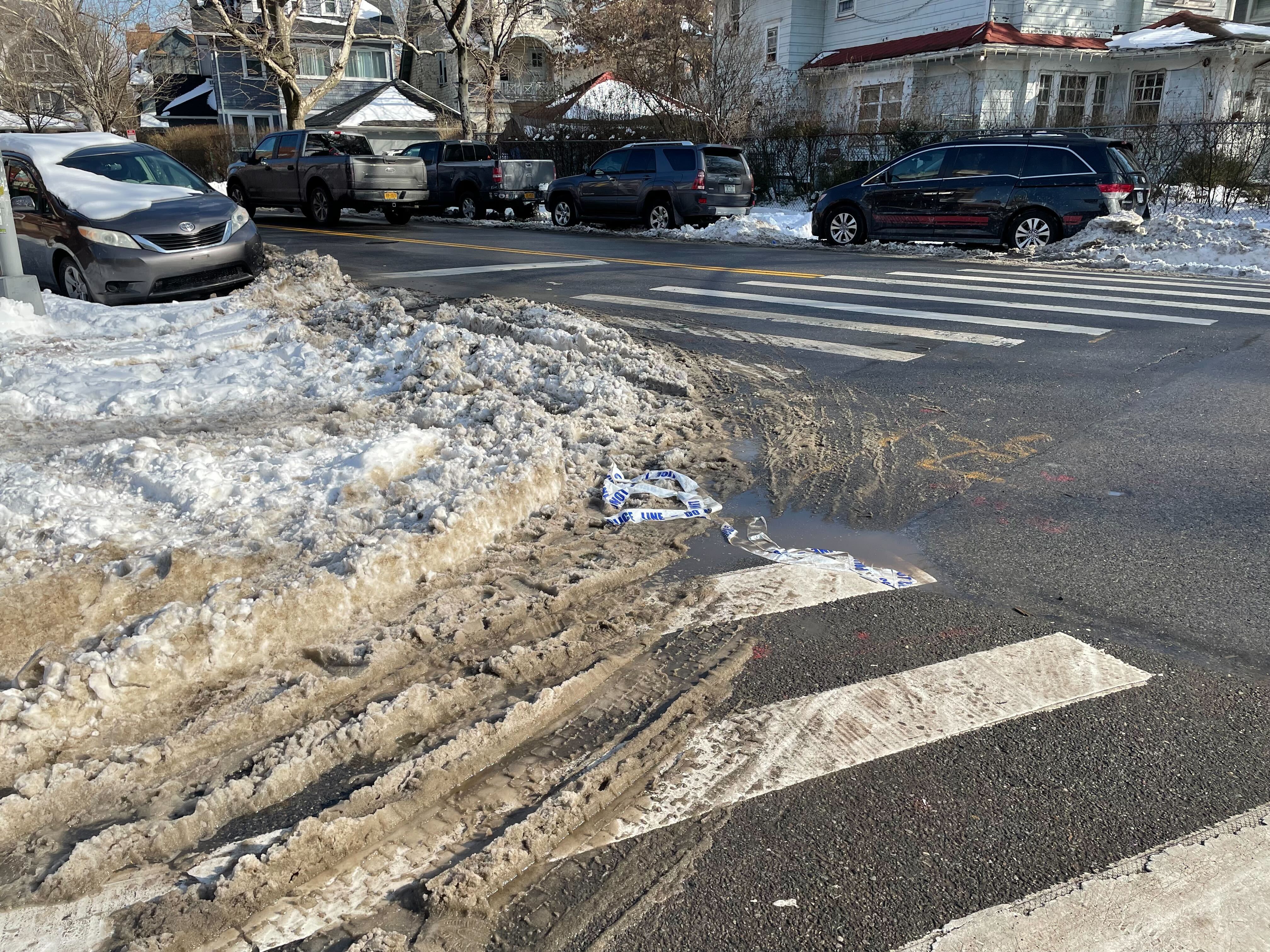 Hours later, police tape at the scene revealed that snow had still not been properly removed from the intersection.