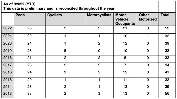 The girl’s injuries are just the latest example of a pedestrian health crisis that confronts the Adams administration in its first two-plus months on the job. So far this year, 25 pedestrians have been killed — up from 20 over the same period last year — an alarming number, given that 2021 went on to become the bloodiest year in the entire Vision Zero era.
