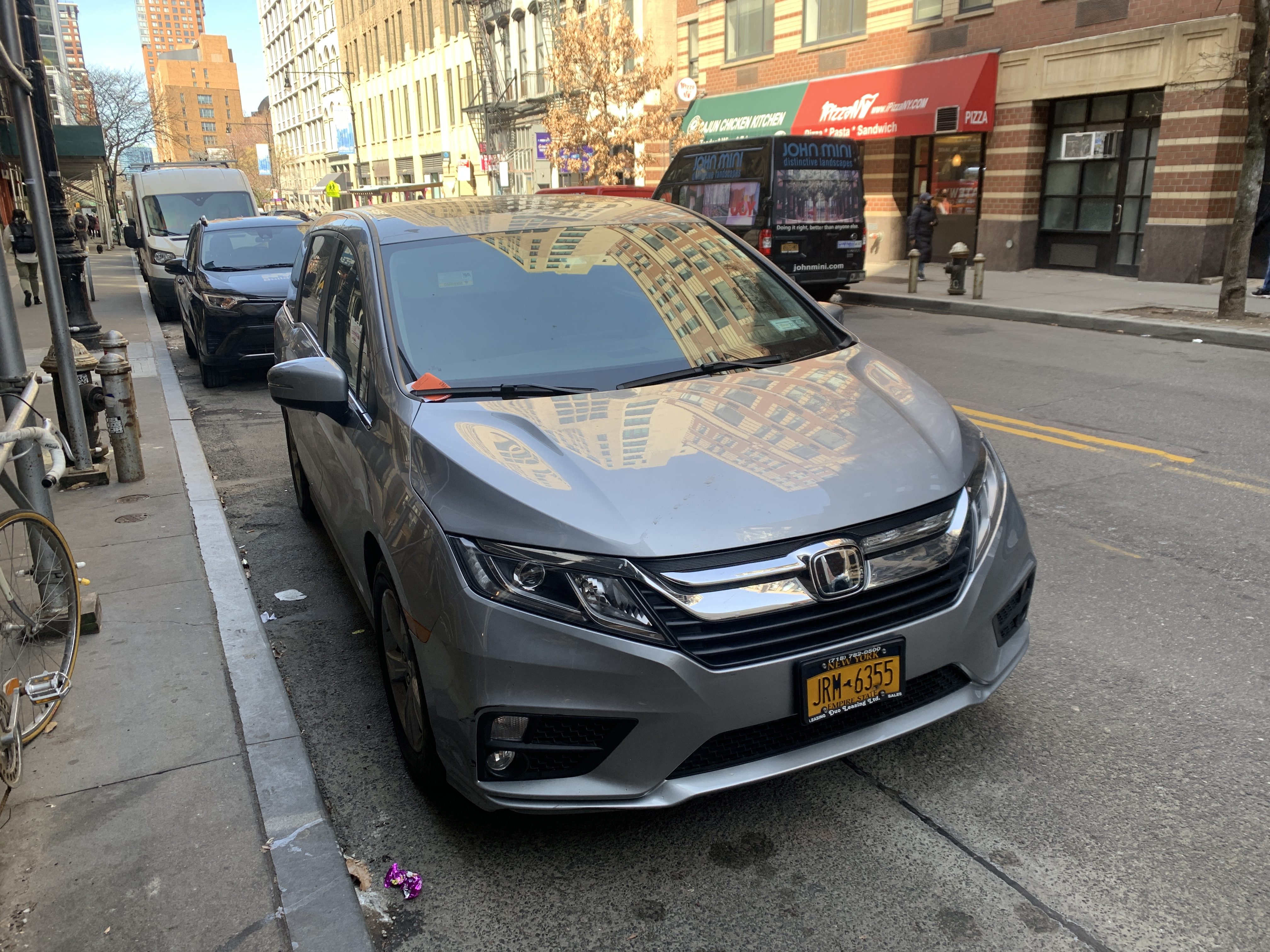 This question came up again on Tuesday when we were at Zucker’s on Chambers Street (seriously — great bagel) and saw a parking agent slap yet another ticket on this Honda minivan parked at a hydrant: