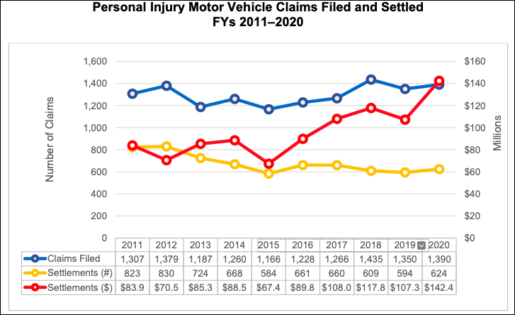 Such suits are quite common, as motor vehicle settlements comprise the largest share (67 percent) of city settlement payouts: