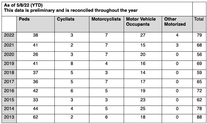 That shortcoming explains in part why traffic fatalities remain on track to be worse than last year, which itself was the worst year for fatalities since the Vision Zero era began in 2014.