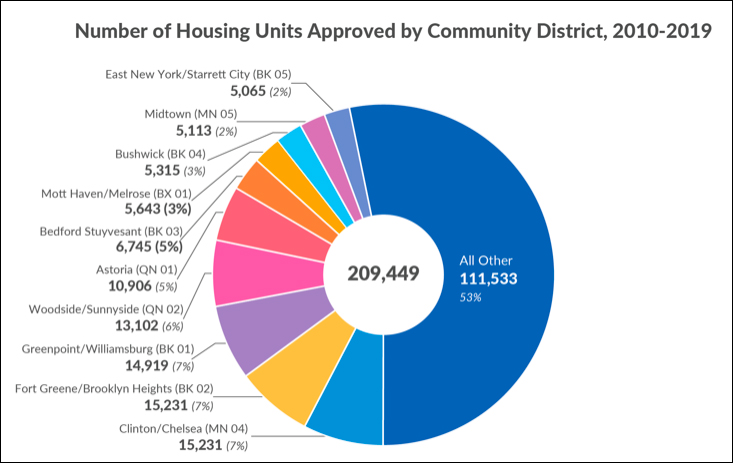 But Community Board 4 has distinguished itself from other neighborhoods in that it has supported the construction of a significant number of new housing units, according to the Citizens Budget Committee, as the chart below shows.