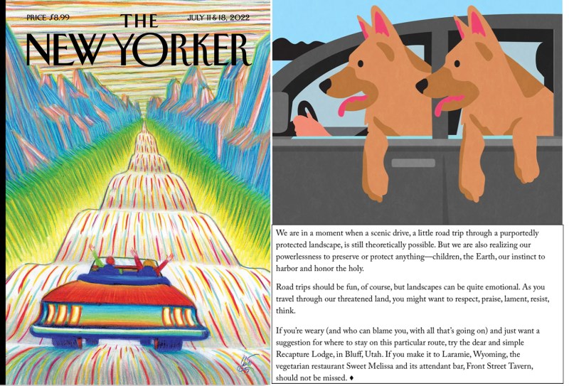 We usually savage the New York Times in these pages for constantly elevating the car in its coverage, despite the fact that the vast majority of residents of the city that shares a name with the paper don’t own or want one. Today, we’ll savage the New Yorker, whose annual “Adventures” issue reads like it came from the Detroit playbook.