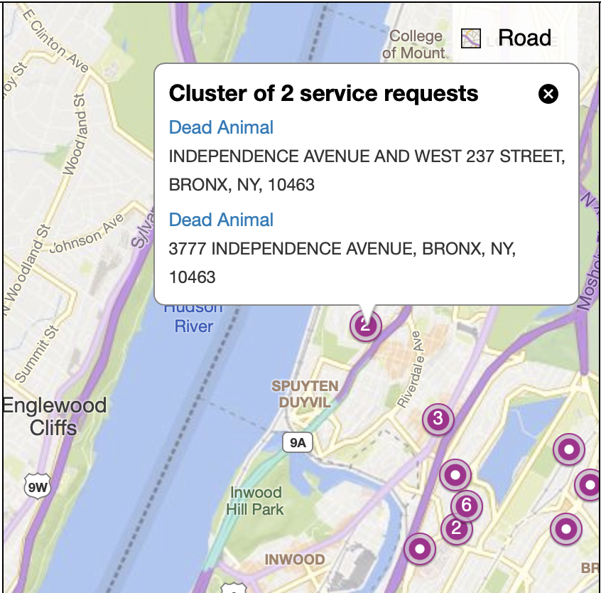Two other people, however, had put in service requests in the 3 o’clock hour — and those said that DSNY would come and get the swelling carcass “within two days.” Two days?
