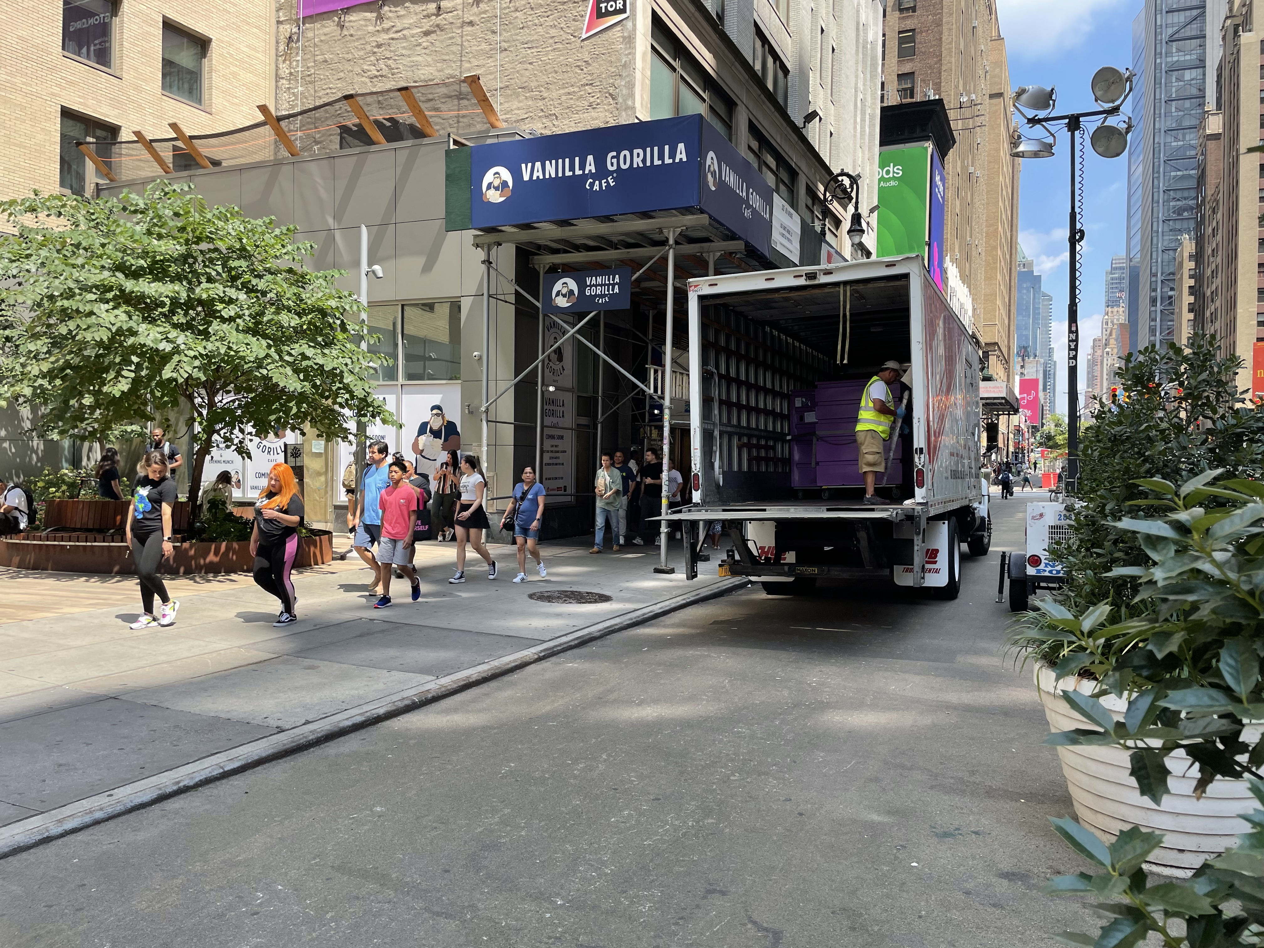 There’s a clear need for space for commercial trucks, and while the existing commercial parking between West 51st and 52nd streets was working as intended, there were other sections of Eighth Avenue where the sidewalk extensions were turned into parking spots for trucks or the NYPD, which highlighted LeFrancois’s call for neighborhood loading zones in the area.