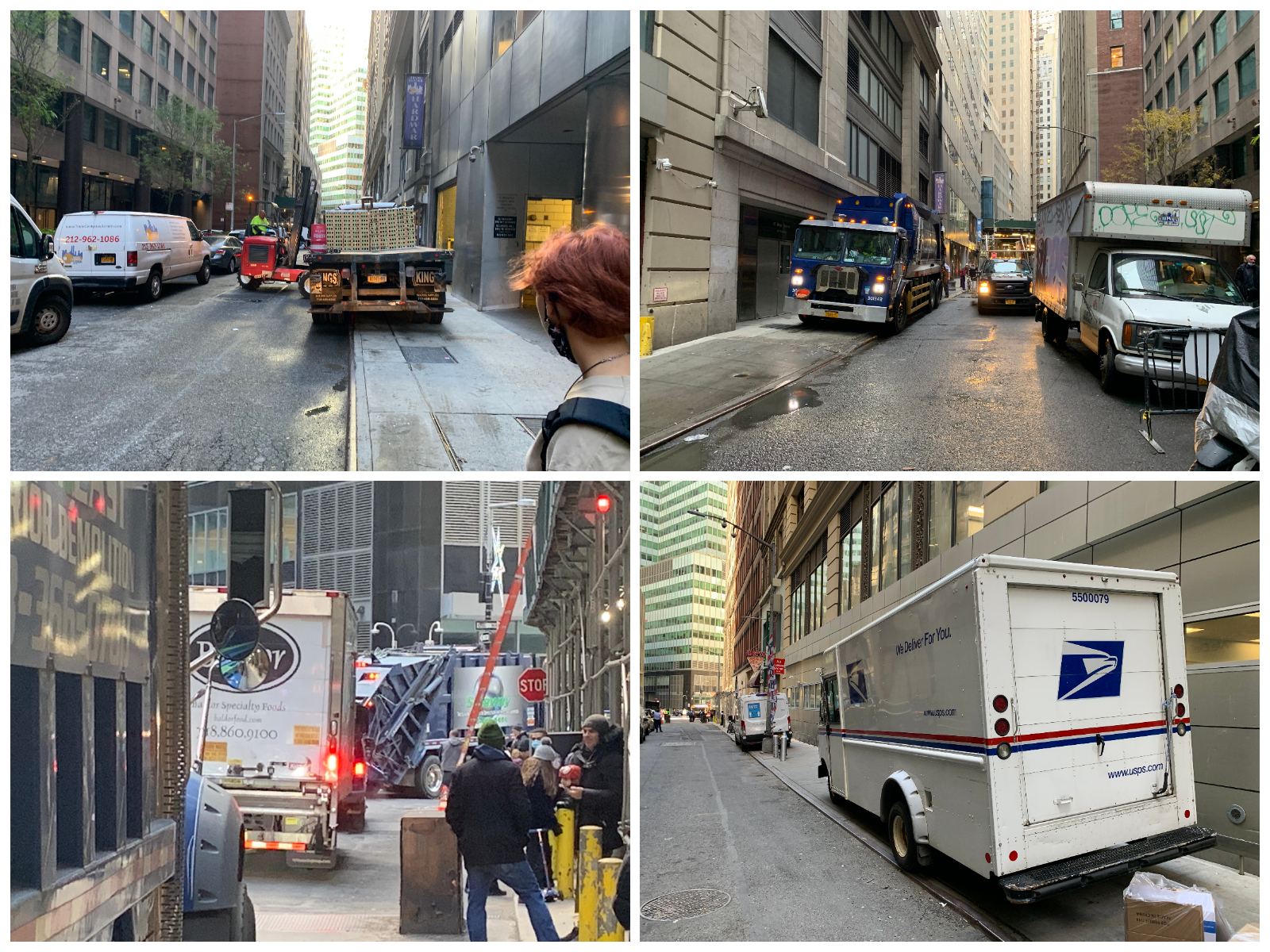 In an email last month, Wingert told Walkow that NYPD officials went to look at conditions on the street in June and “did not see a condition warranting a full closure as requested.” That same day, Ed Pincar, DOT’s Manhattan Borough Commissioner, wrote to Walkow that “my colleagues and I are not yet convinced that the requested Open Street designation will resolve the principal obstruction to pedestrians, especially school children, walking on New Street: the illegal stopping, standing, and parking of trucks along the sidewalks on both sides of the street. This appears to be primarily an enforcement matter, which we will review with NYPD.”