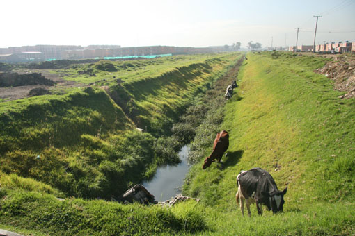 To my left, there were cows grazing in an open drainage ditch. We were not talking about a particularly wealthy part of town.